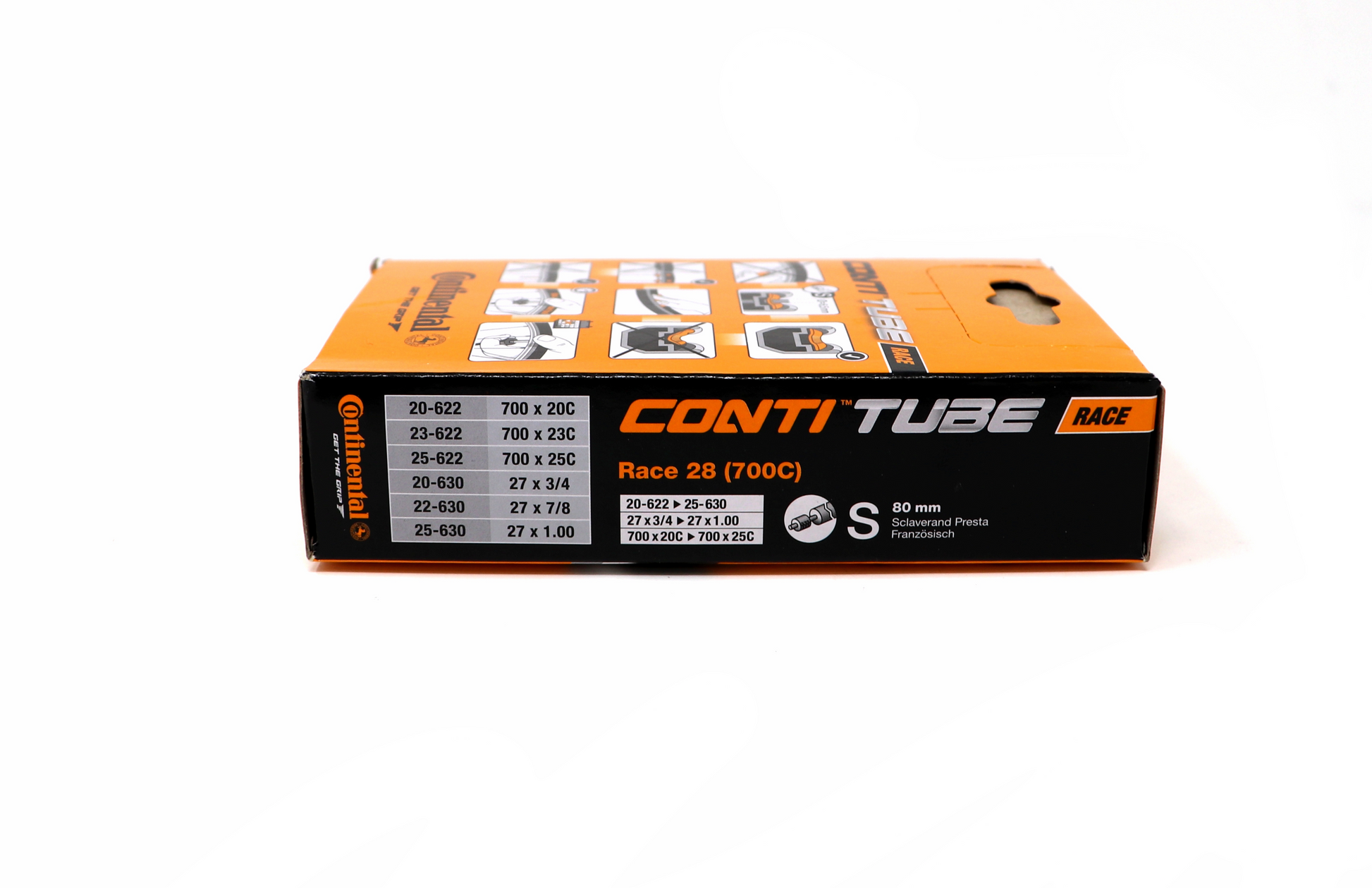 - The Continental Race 28 700 x 25 / 32c inner tube with 80mm valve is designed for wheels with a profile up to 60mm. (White).