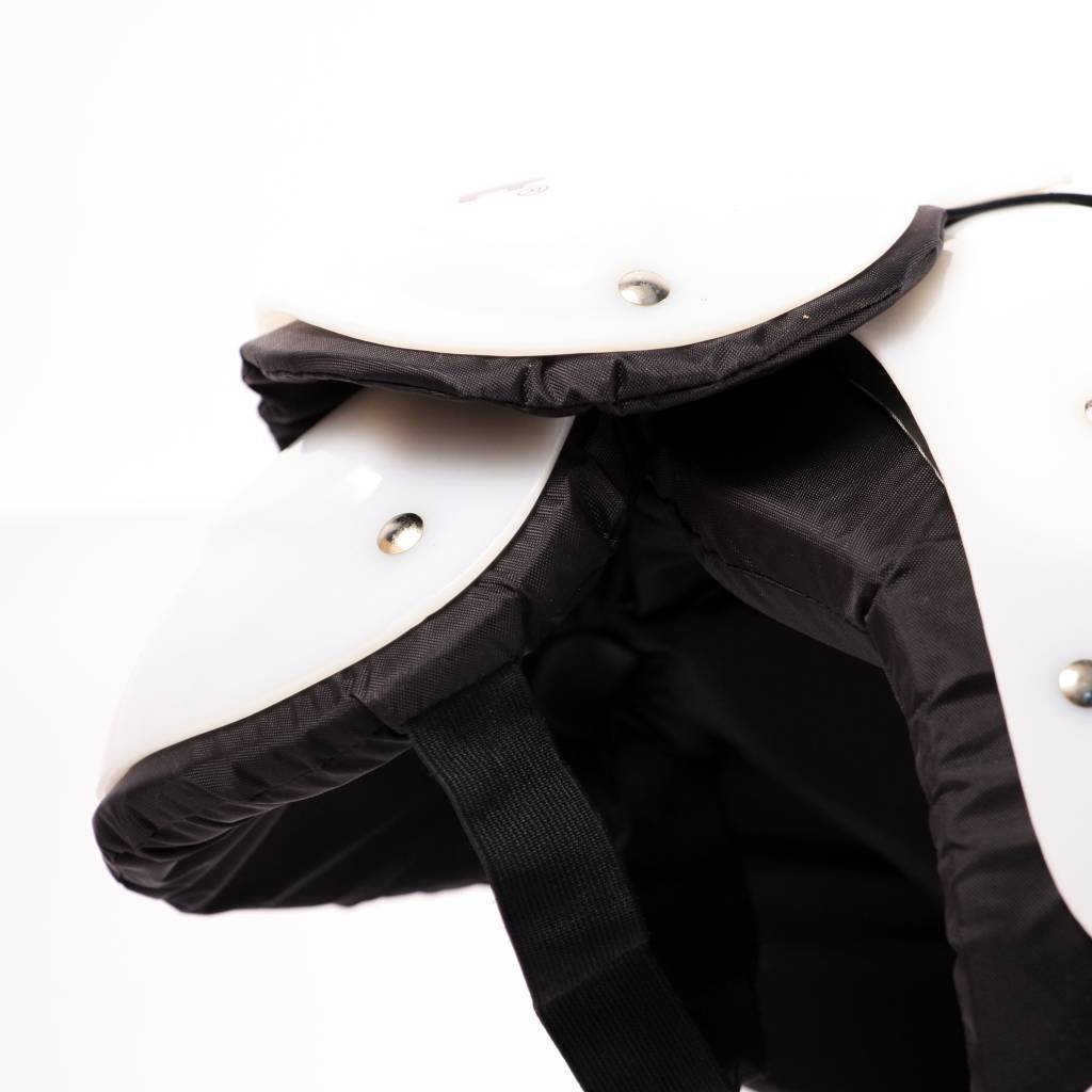 The VISION I is a robust American soccer shoulder pad that reduces the risk of injury during play. This high-quality shoulder pad allows great freedom of movement, and is adjustable thanks to two elastic straps on the sides. Made from Nylon and PVC, its dual-density foam absorbs shocks perfectly. Ideal for QB-WR-DB.